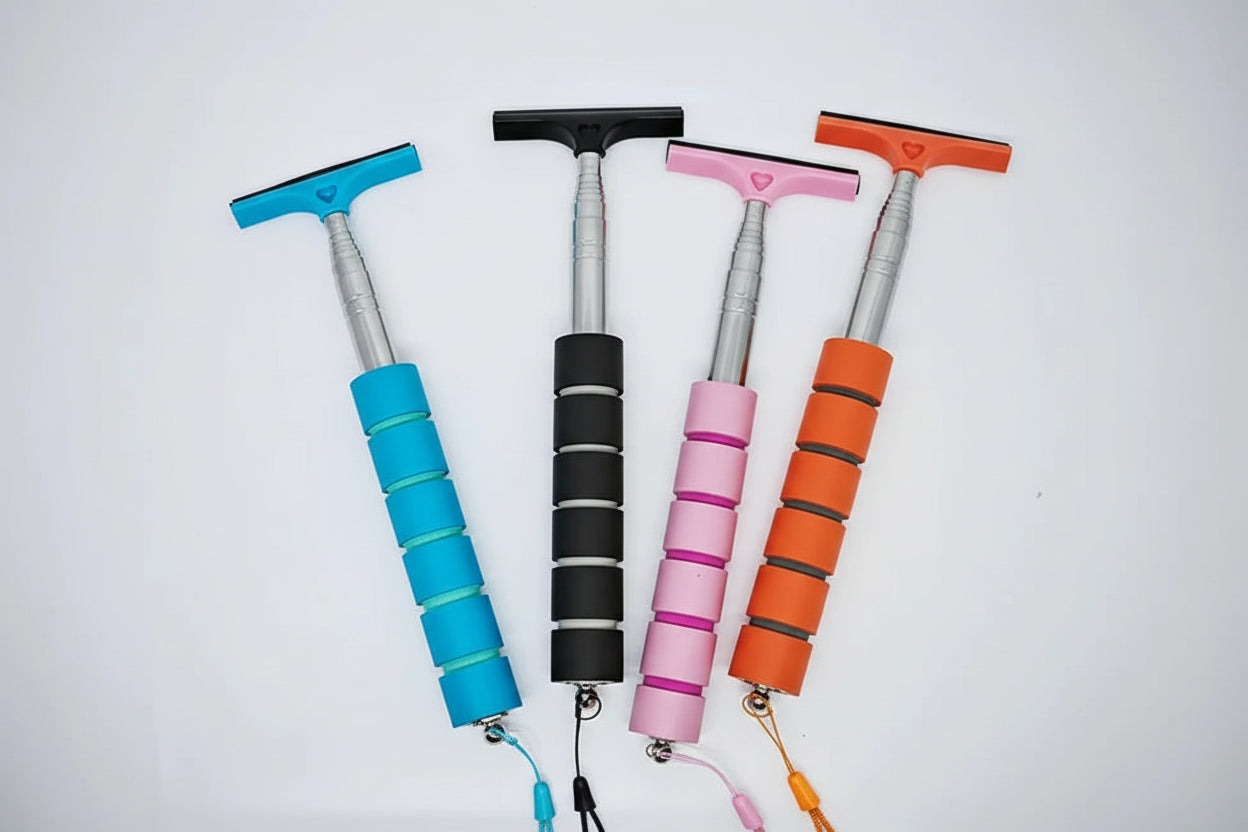 This versatile telescopic mirror wiper extends from 21 to 98cm, making it ideal for reaching difficult angles on car windows and mirrors. Featuring a durable scraping head measuring 6.5-6.8cm wide, it combines natural rubber, stainless steel, and sponge materials for effective cleaning without scratching surfaces. The handheld design collapses for convenient storage, while its universal fit suits most vehicles. Lightweight at approximately 65g, this multi-functional tool handles mist, condensation, and debris with ease. Available in five vibrant colors—black, pink, orange, green, and blue—it's an essential accessory for maintaining clear visibility and glass clarity on the road.